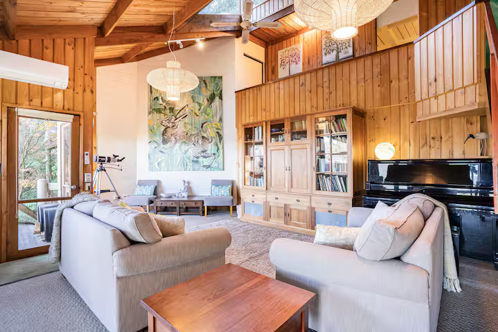 Nestled high on Mt Ben Cairn 1.5 hours drive from Melbourne, our retreat home is surrounded by 25 acres of untouched rainforest.